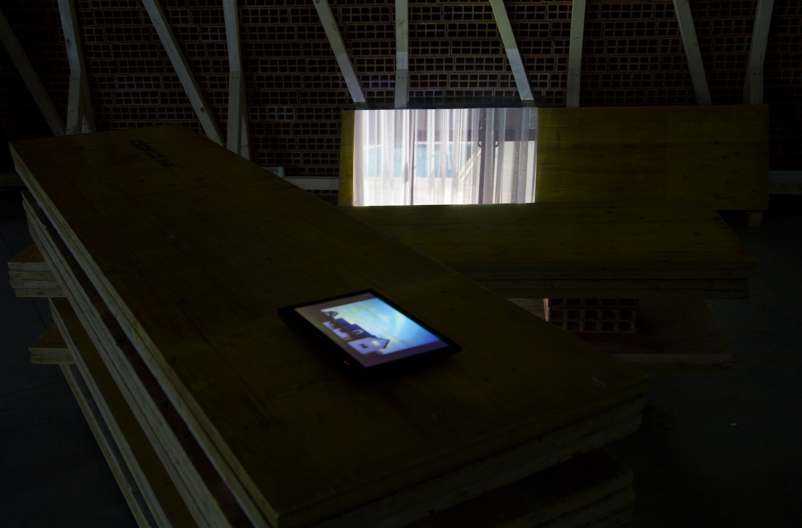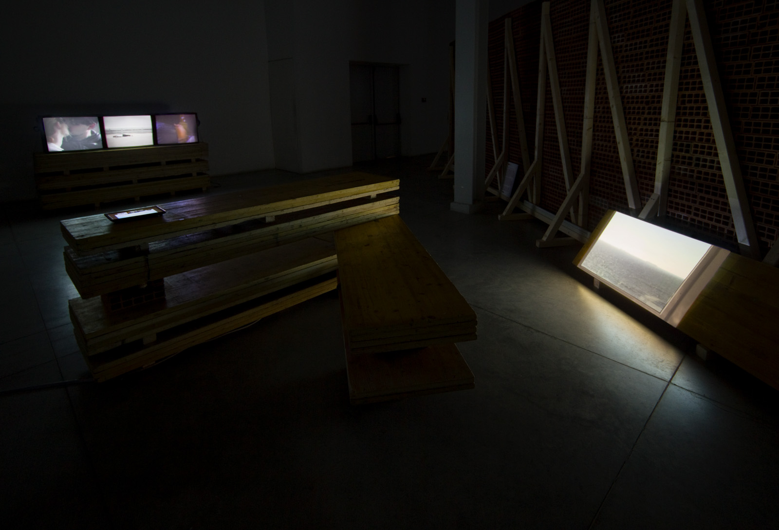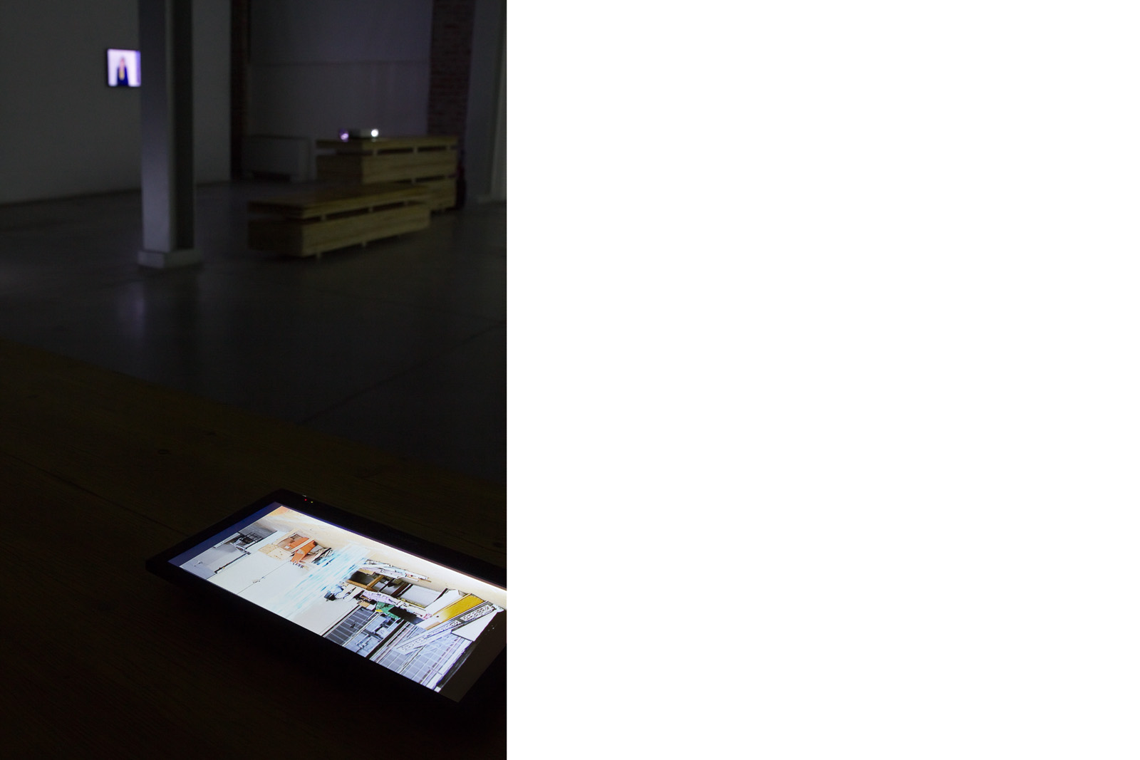 The exhibition was installed amongst, and utilising, the stacked components of an installation that was part of Careof's ongoing Performing Archive series.