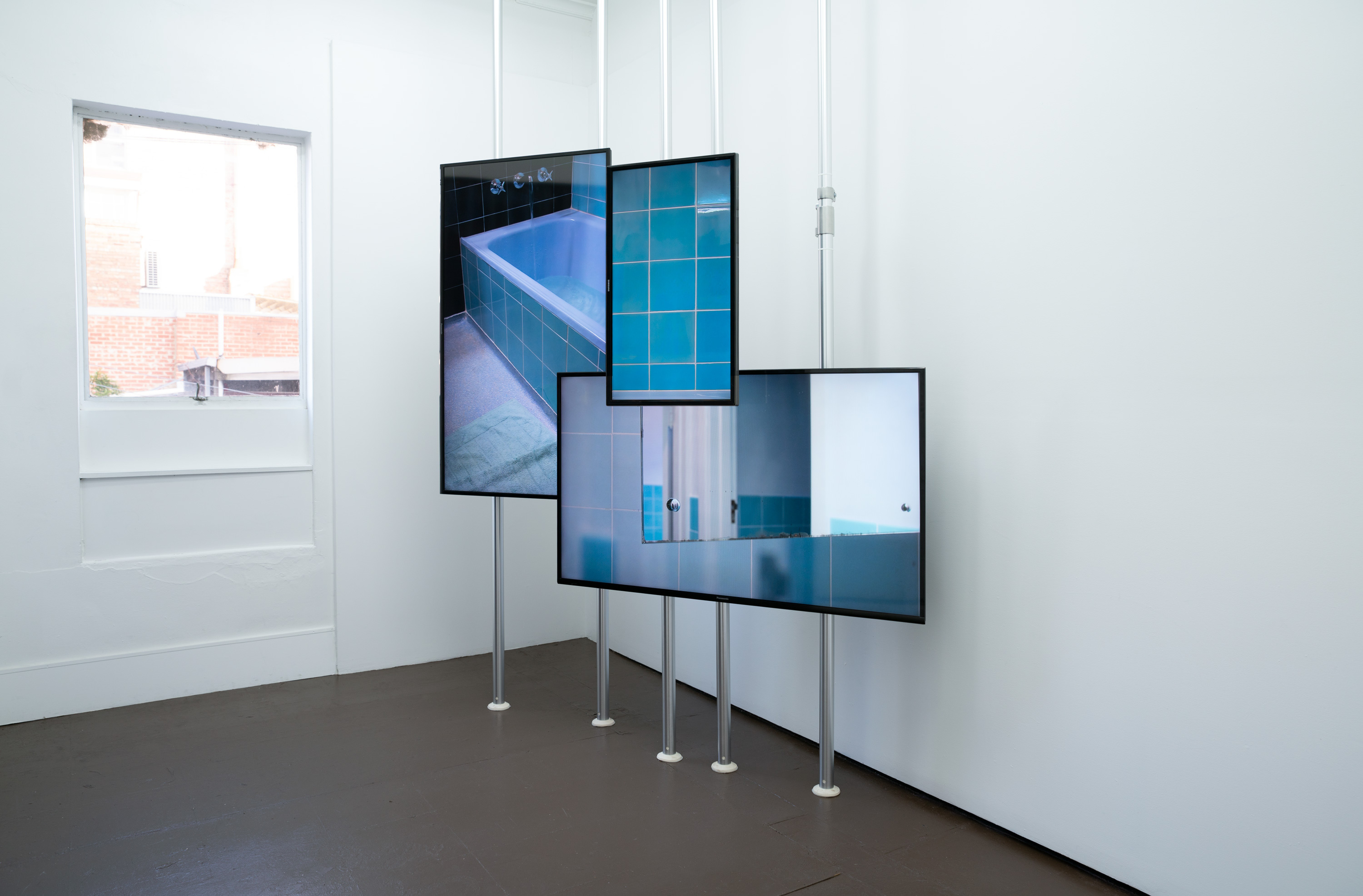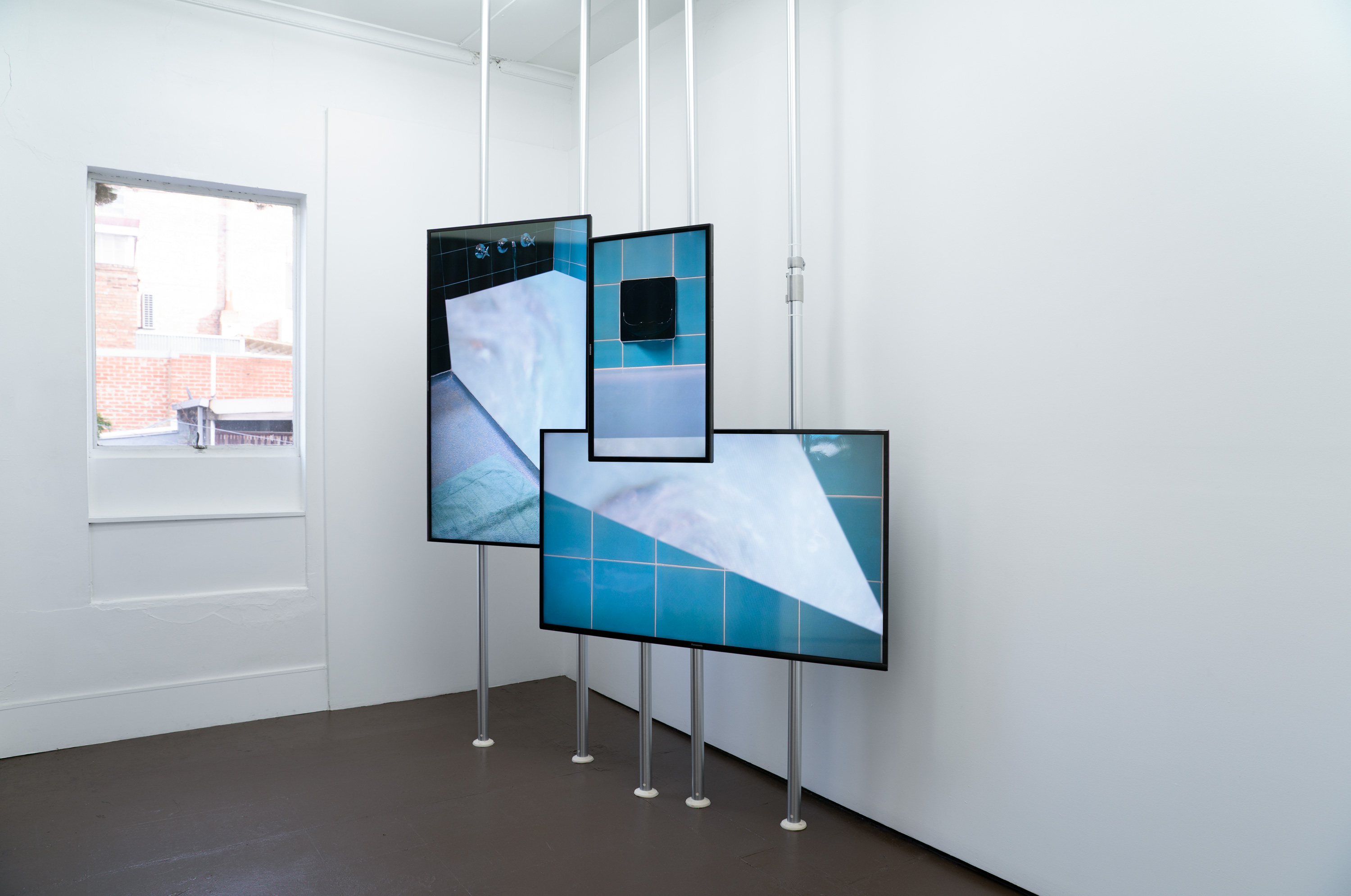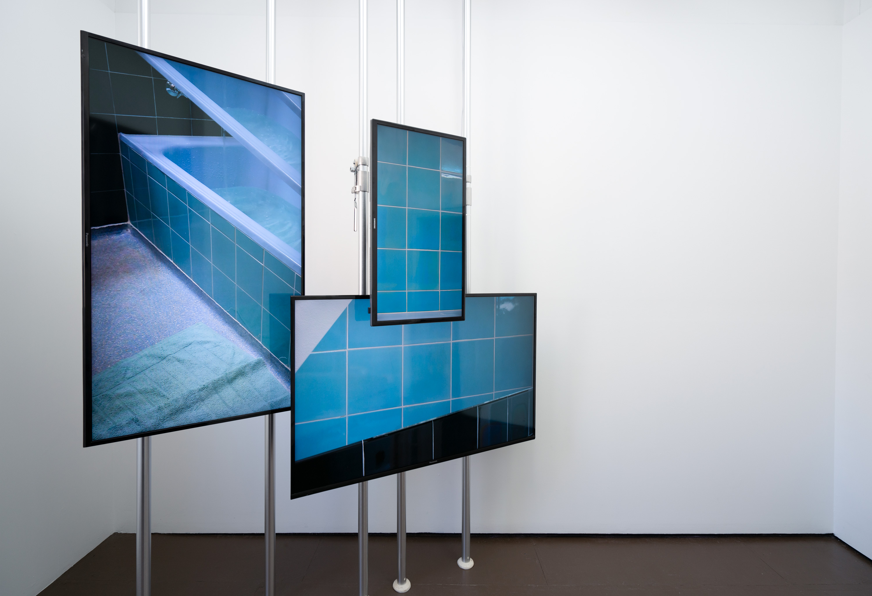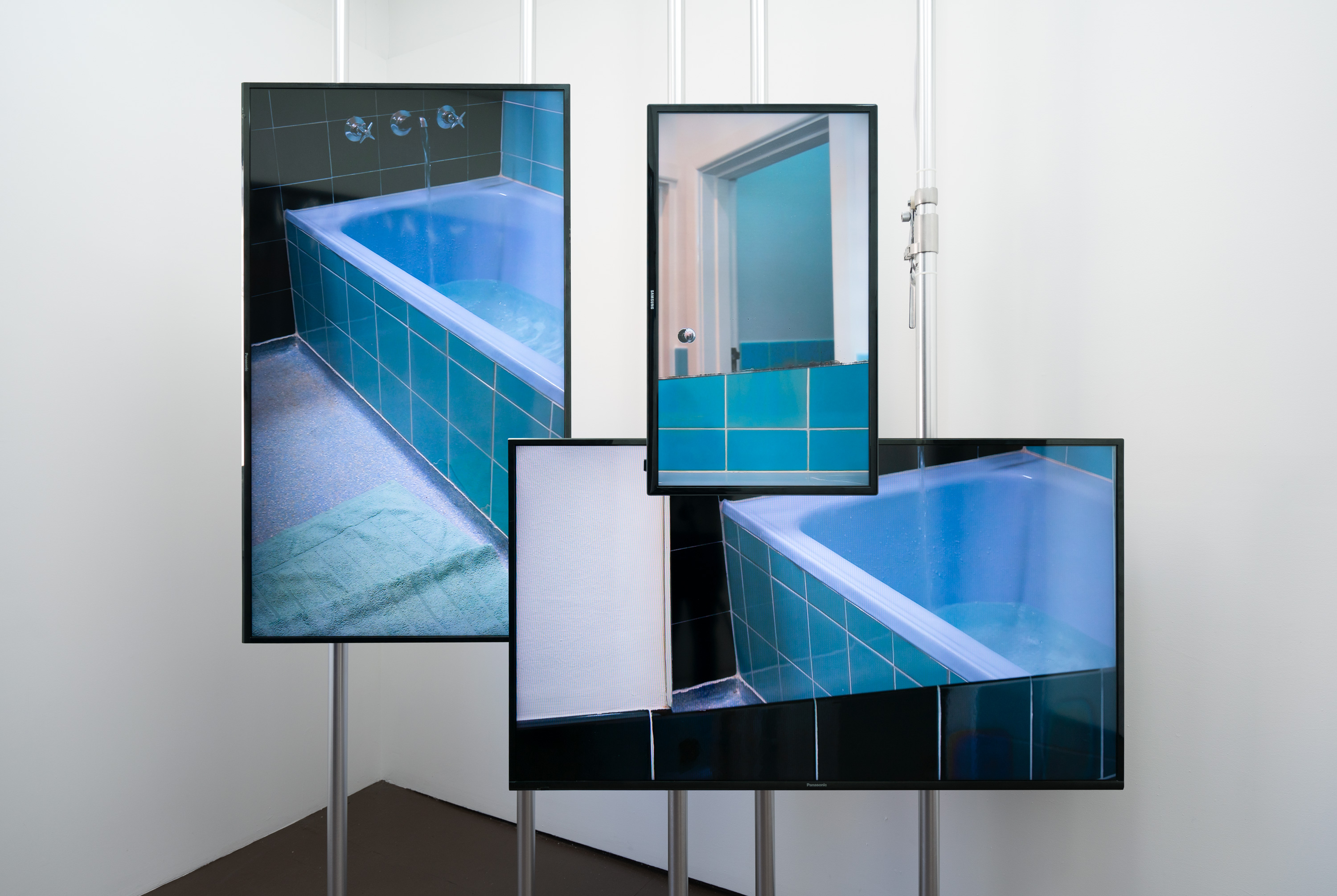 In contrast to Bathroom, Paper Tiles lingers on the small details. A crack in the tile, ripples across the surface of water and wear on the terrazzo floor are the focus of this work. The bath slowly fills up over the course of the video, giving a physicality to the images and locating them within the time of inscription, while the details speak to the site having existed through time. This is documentation of a bath that exists within the world.